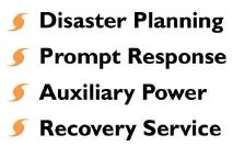 | The ability to expand our services to meet the individual needs of our clients is crucial to a successful recovery. The multiple threats to your business resulting from a major power outage dictates the plan of action. Satellite uplink computer networks, GPS-equipped vehicles, satellite telephones, food service and temporary office space are a small sample of what we offer our clients |
